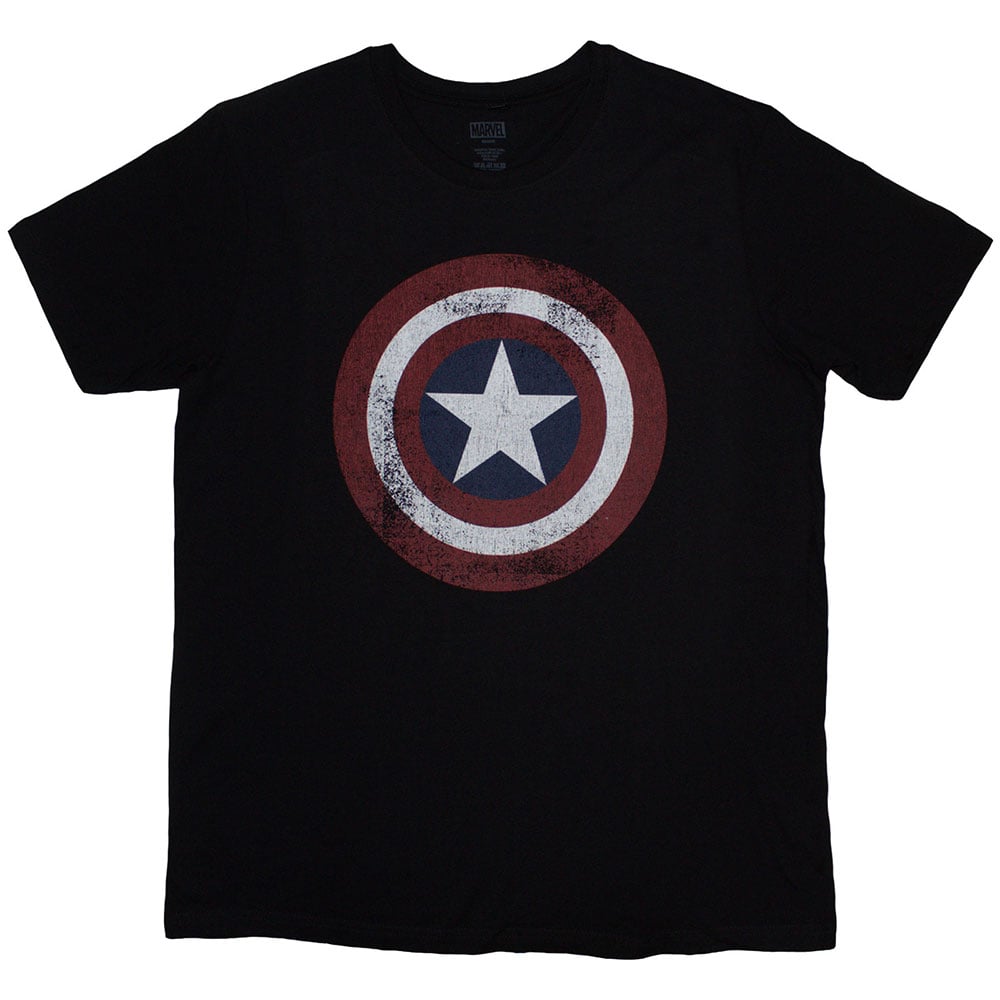 Marvel Comics: Unisex T-Shirt/Captain America Distressed Shield (Black) (Medium)