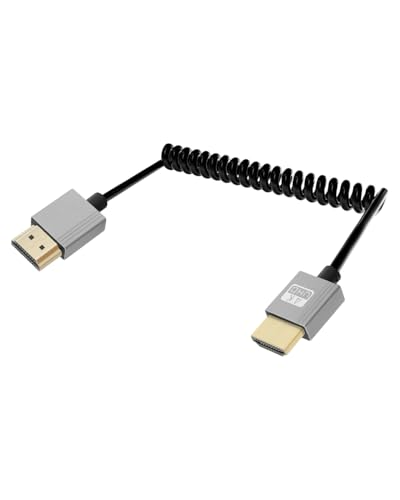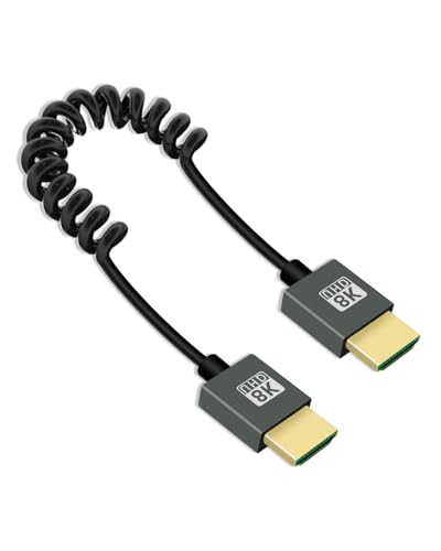YANBORONSN 8K HDMI spiralkabel 3FT, kort HDMI till HDMI-kabel, fjäderspiral HDMI 2,1 kabel 8K@60Hz, 48 Gbps, för kamera/TV/Capture kort/surfplatta (regelbunden
