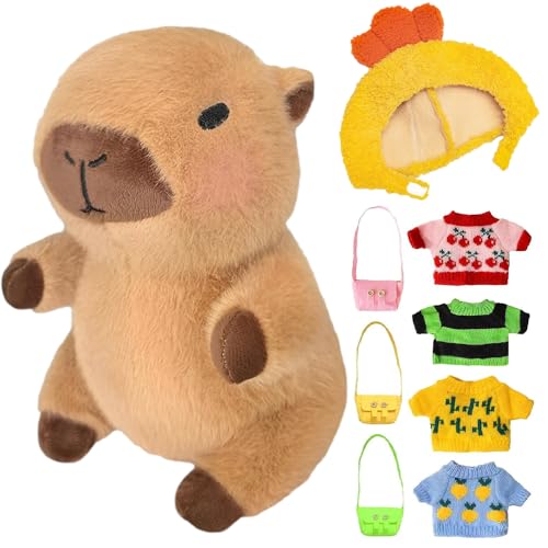 Afenau Capybara plyschdjur, 25 cm, Capybara gosedjur med kläder och accessoarer, snacks, capy-bara, vattengris, gosedjur för barnleksaker, födelsedagspresenter, heminredning