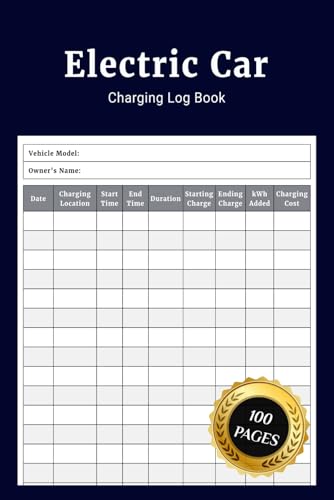 Electric Car Charging Log Book: Track Your EV's Charge History, Costs, and Efficiency | Electric Vehicle Battery Charging Record Logbook