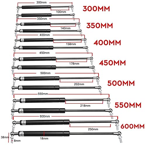 1pcs 450mm Universal gasfjäderkulled Gas Strut, 50N/100/150/200/250/300/350/400/450/500/550/600/650/700/750/800/850/900/950/1000/1100/1200/1300/1400/1500N Gas Struts for car, RV bus, cabinet, bed, win