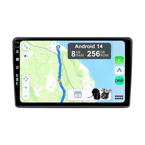 BXLIYER – 6G+128G – Android 14 Double Din Car Stereo Head Unit – Inbyggd DSP/Carplay/Android Auto – Backup Camera + MIC – IPS 9 Tum 2 Din – DAB Dual Band WiFi Bluetooth Rattkontroll fast-båt 360-CAM
