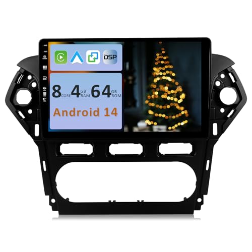 YUNTX Android 14 2 Din Radio Navigation för Ford Mondeo/S-max/C-max/Focus/Galaxy: [Integrerad CarPlay/Android Auto/GPS] -IPS 2.5D 7 Tum Pekskärm-DAB/Bluetooth 5.0/Ratt Kontroll/Mirror-Link/Camera