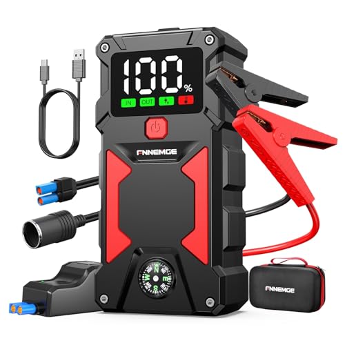 FNNEMGE bil startstöd Powerbank 6000A bil batteri startare power,12V car jump starter för bil (upp allt bensin eller 8,0 liter dieselmotor), med USB-laddningsutgång, LED-lampa, HD-stor skärm