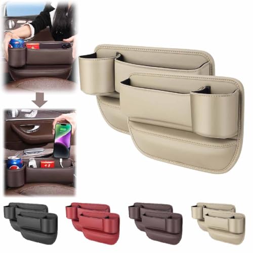 2Pcs Car Leather Cup Holder Gap Bag,Seat Gap Storage Box,Car Seat Gap Filler Organizer,Car Accessories,Multifunctional Car Seat Organizer With Cup Holder For Phones Glasses Keys Cards (Beige)