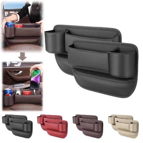 2Pcs Car Leather Cup Holder Gap Bag,Seat Gap Storage Box,Car Seat Gap Filler Organizer,Car Accessories,Multifunctional Car Seat Organizer With Cup Holder For Phones Glasses Keys Cards (Black)