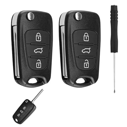 2 stycken bilnyckelshölje kompatibelt med Hyundai i10 i20 i30 ix20 ix35 och Kia Ceed Soul Sportage Venga, 3 knappar fjärrkontroll bil nyckelhus med oklippt blad och skruvmejsel