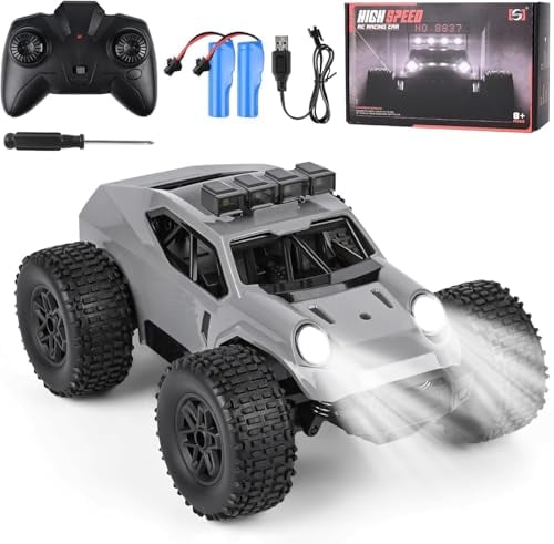 SZJJX Remote Control Cars for Kids Age 3 4 5 6 7+,2.4Ghz RC Car with LED Lights,20 KM/H High Speed RC Monster Trucks for Boys Toys,2WD Toy Car for Christmas Birthday Girls Boys Gifts Gray Green