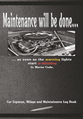 Funny Cover: Maintenance Will Be Done... As Soon As The Warning Lights Start A-Blinking In Morse Code.: Car Expense, Mileage and Maintenance Log Book ... And Other Vehicles | 7x10" | 120 Pages