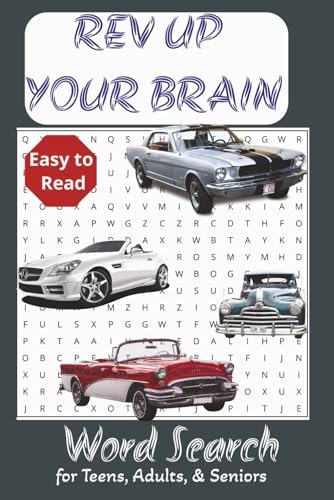 Rev Up Your Brain: Word Searches with Easy to Read print about cars, car parts and more | 6x9 inches, 160 pages| 80+ puzzles... Gift for Vacations and free ties