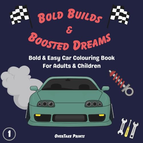 Bold Builds & Boosted Dreams: JDM Car & Parts Colouring Book: 30 Easy & Bold Pages for Kids, Adults & Car Enthusiasts | Jdm car book | Perfect gift for car enthusiasts