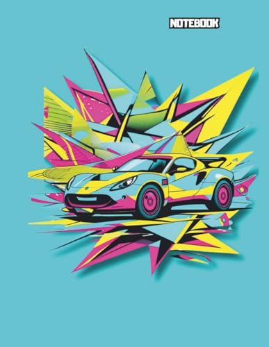 Notebook: Neon Racer Notebook – Pop Art Sports Car Journal with Coloring Page | 160 College-Ruled Pages