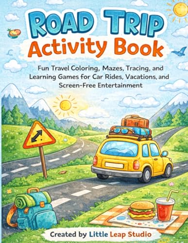 Road Trip Activity Book: Fun Travel Coloring, Mazes, Tracing, and Learning Games for Car Rides, Vacations, and Screen-Free Entertainment