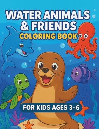 Water Animals & Friends Coloring Book: Sea Life Animals for Kids Ages 3–6 Under the Sea Dolphins, Turtles, Whales, Octopus & More: Color prompts • ... car/road‑trip activity • Calming, screen‑free