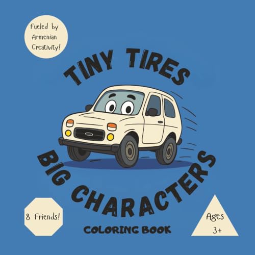 TINY TIRES, BIG CHARACTERS: Car coloring A Heartwarming Car-Themed Coloring Book Featuring 8 Charming Car Friends, 8.5x8.5 inches, 8 Rhyming Verses, ... children activity, vacations and holidays.