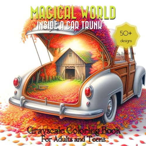 Magical World Grayscale Coloring Book: Fantasy Landscape and Enchanted Wonderland Inside a Car Trunk - Suitable for Beginners, Teens, and Adults for Relaxation and Stress Relief