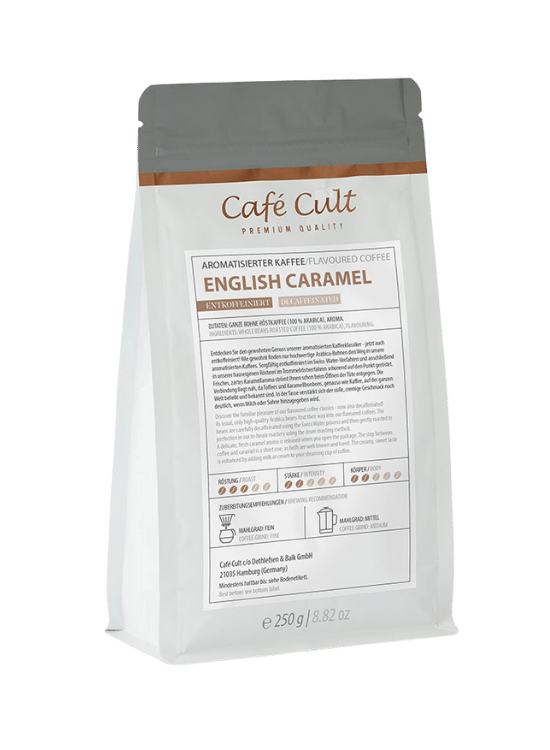 Café Cult Smaksatt kaffe English Caramel koffeinfria kaffebönor 250g