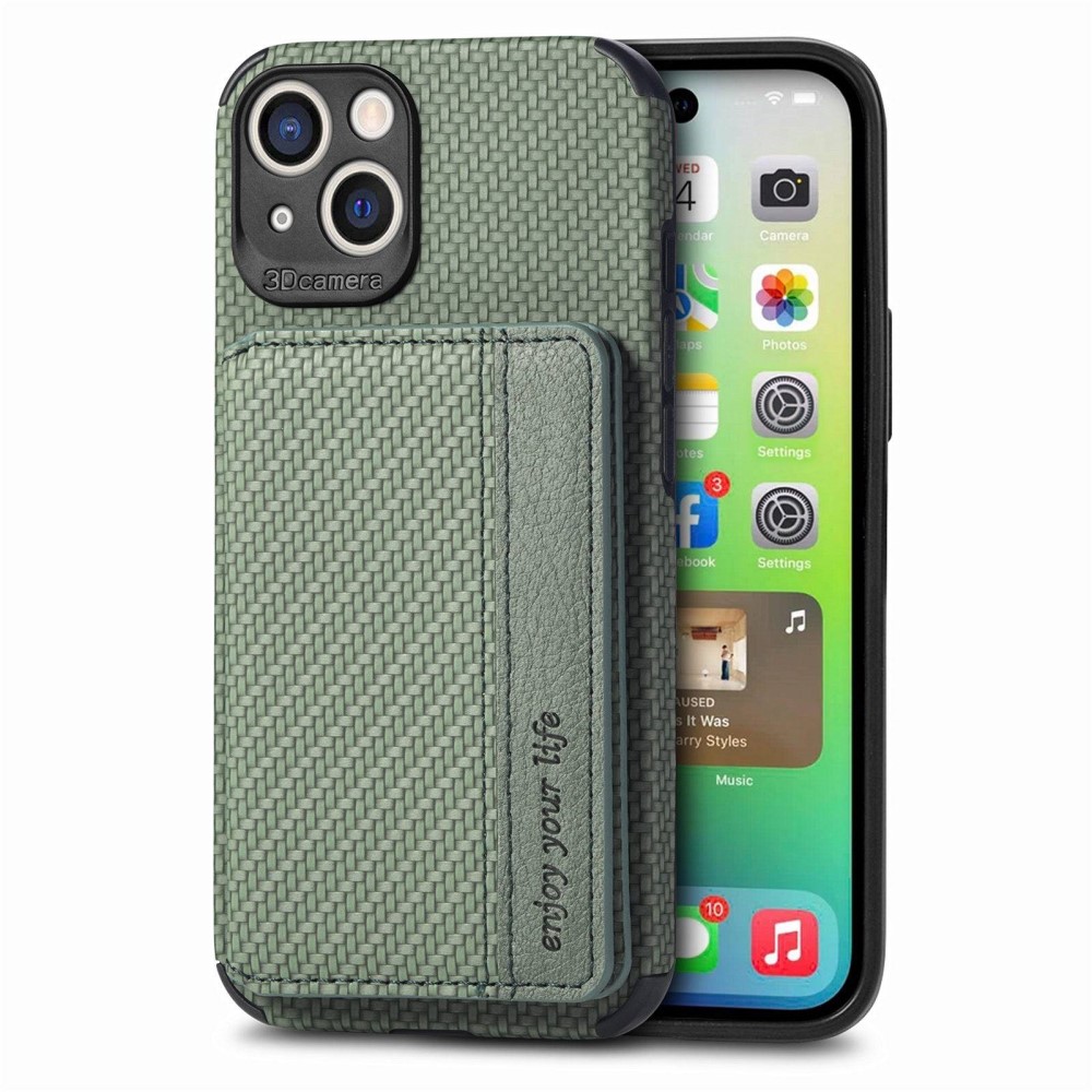 iPhone 14 Carbon Fiber Texture Skal med Korthållare - Grön