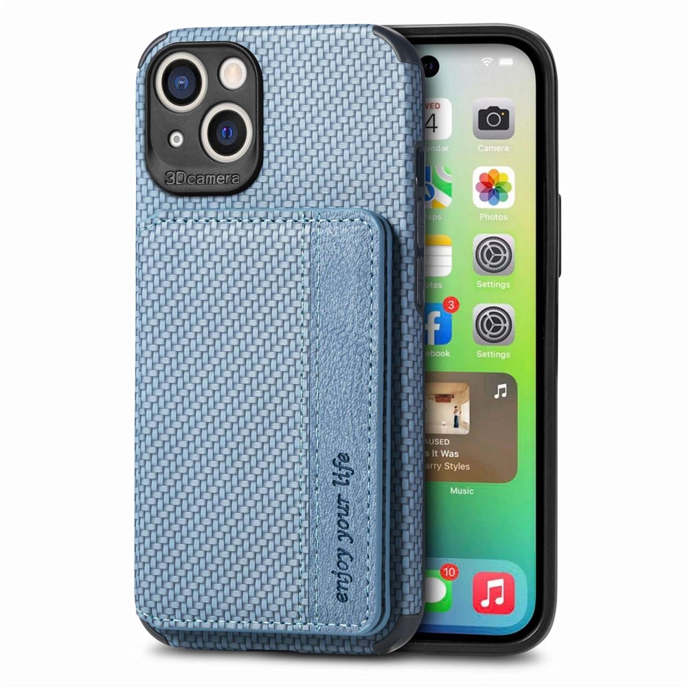 iPhone 14 Carbon Fiber Texture Skal med Korthållare - Blå
