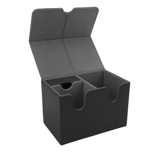 SENECESLI Kortlagringslåda, Secure Stängning 2 Separate Lids Card Deck Box för Handelskort (Mörkgrå)