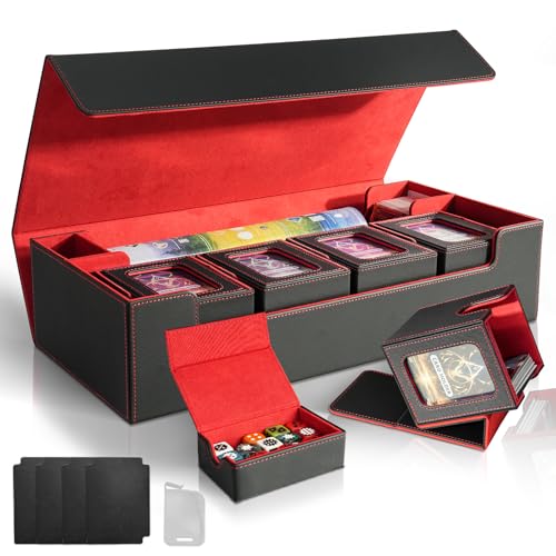 Fondlife Samlarkort, förvaringslåda för 800 kort, PU-läder magnetisk kortförvaringslåda, förvaring för kortspel (TCG), kompatibel med vanliga samlarkort. (Svart röd)
