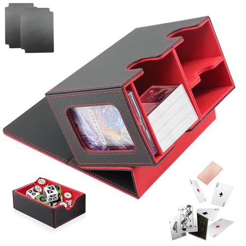 lafo MTG Deck Box med visningsfönster, premium Magnetic Commander Magic Deck Box med kubfack för 200 kort, 4 kortseparatorer 2 Toploader Trading Card Box