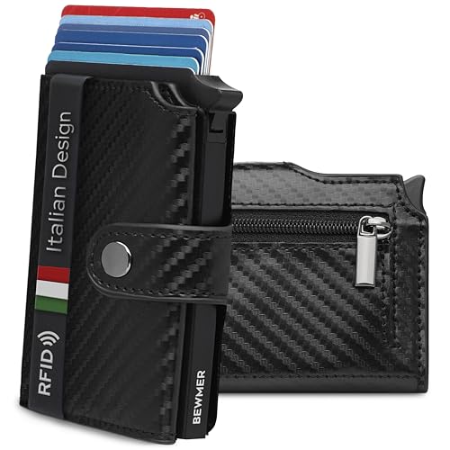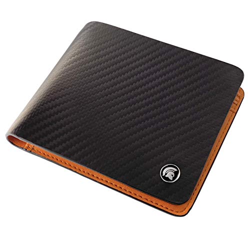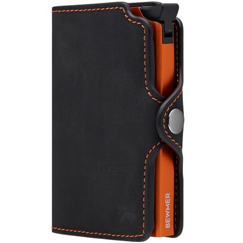 BEWMER 1 x Protected Card Case | Slim Wallet for Men and Women | Card Holder with RFID Protection and Carbon Fiber Money Clips, Black Orange, B1 Klassisch (ohne Reißverschluss), black orange