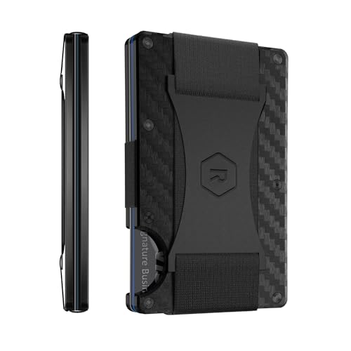 The Ridge Minimalist Slim Wallet for Men - RFID Blocking Front Pocket Credit Card Holder - Aluminum Metal Small Mens Wallets with Cash Strap (Carbon Fiber)