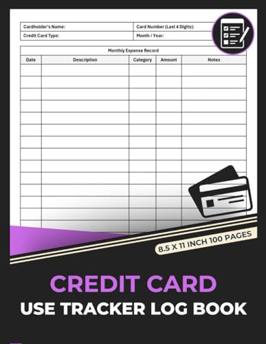 Credit Card Use Tracker Log Book: Record Expense Monitoring and Payments | Monthly Credit Card Usage Logbook | Credit Card Purchases Journal