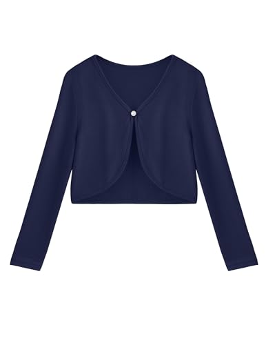 Arshiner Flicka bolero med öppen framsida kofta cardigan för barn, stickad bolero med långa ärmar och knappstängning, Marinblå, 120
