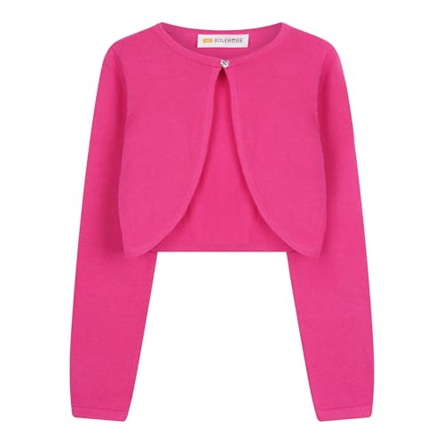 Bolerose Flickor Lång Ärm Cardigan Barn Barn Bolero Kort tröja (Knallrosa, 5-6 år)