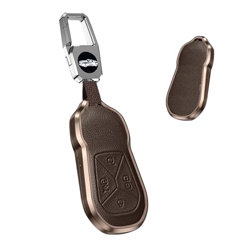 HIBEYO Nyckelfritt bilnyckelfodral passar Xpeng P5 aluminiuml skyddande fodral nyckelfodral för Xiaopeng P5 P7 G9 G3 G3i nyckelhus fjärrkontroll tillbehör 4 knappar brun