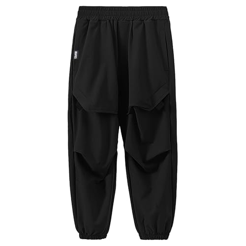 Barn cargobyxor issilke snabbtorkande avslappnade hiphop-byxor elastisk midja utomhus joggingbyxor med fickor, D0905 svart, 110-116