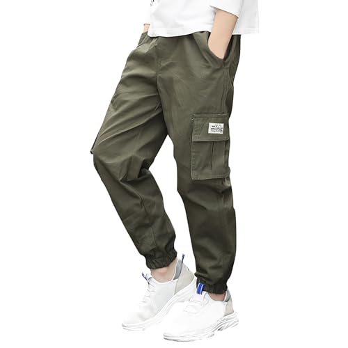 Deekynoop Cargobyxor för barn, pojkar, Twil cargo joggingbyxor med elastisk linning, Armégrön, 9-10 Jahre Große Größen