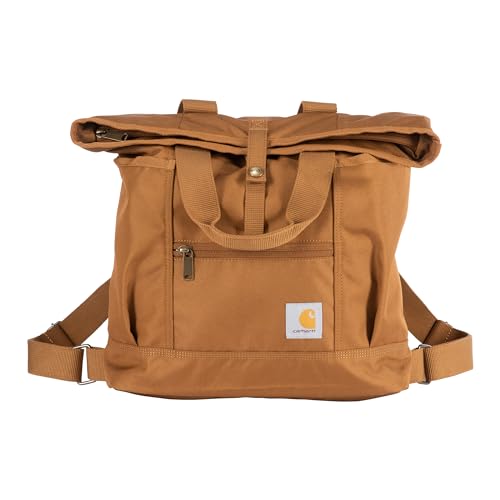 Carhartt Convertible, Durable Tote Bag with Adjustable Backpack Straps and Laptop Sleeve, Brown, One Size