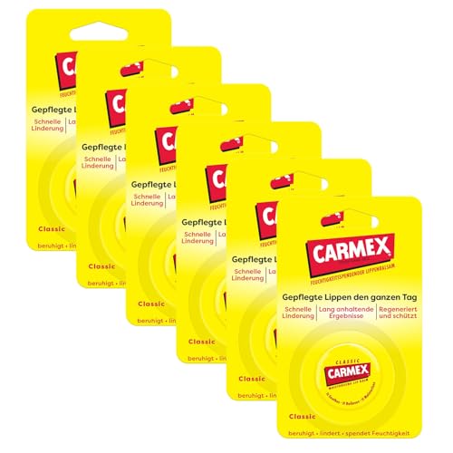 Carmex Classic Degel – läppvård för torra läppar, läppbalsam fuktgivande och lugnande för spruckna läppar, med vaselin, E-vitamin och bivax – (6 x 7,5 g)