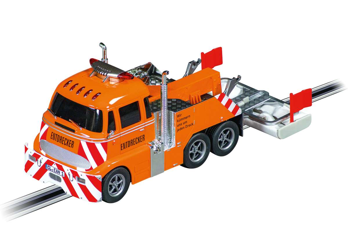 Carrera DIGITAL 132 20031094 Track Cleaning Truck Slotbil i skala 1:32, autentiskt lysande fram- och blinkljus, inklusive dammduk för en ren bana
