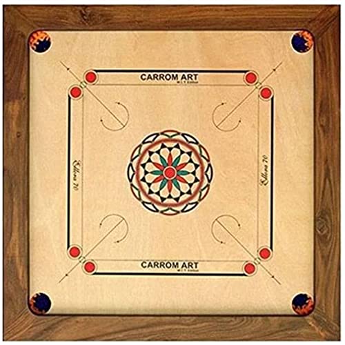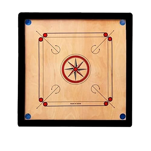 SCEXPORTS Carrom brädspel full storlek (81 x 81 cm yttre) SPL polish (74 x 76 cm inre storlek) 1,5 boardfri myntset och klistermärke ROT-124