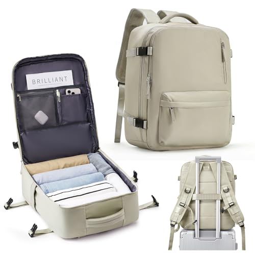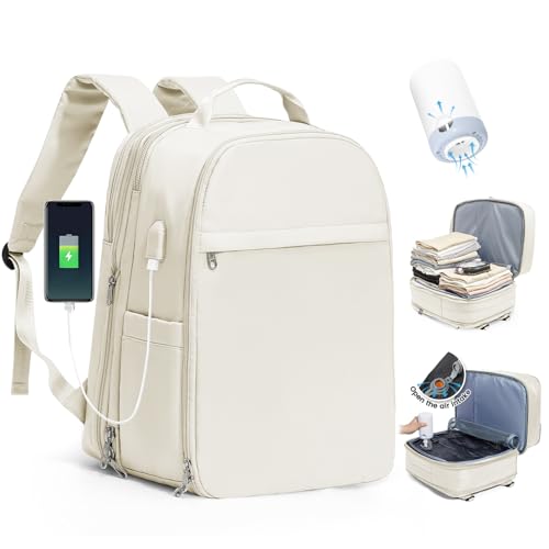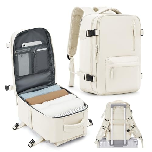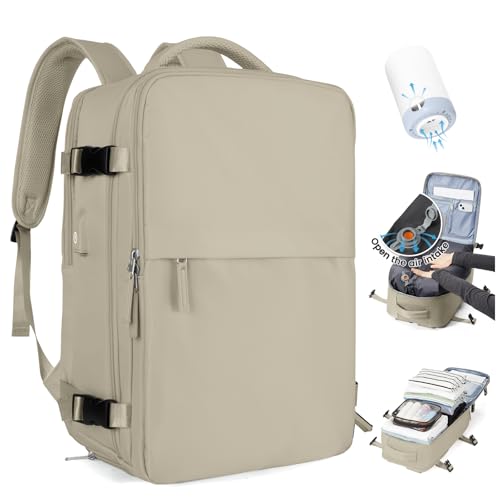 coofay Beige Travel Backpack For Women Men Airline Approved Personal Item Carry On Flight Approved Waterproof Backpack For Traveling On Airplane Weekender Travel Bag