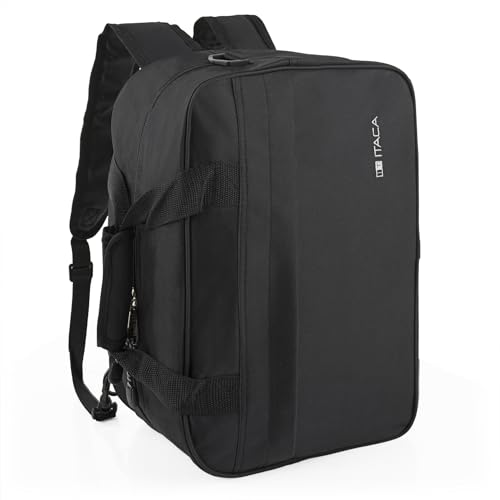 ITACA - Reseryggsäck Handbaggerygga Kabinelyggsäck Carry On Väska Flyg Godkänd Ryggsäck Perfekt För Resor Med Kompakt Design Och Bekväma Fack., Svart