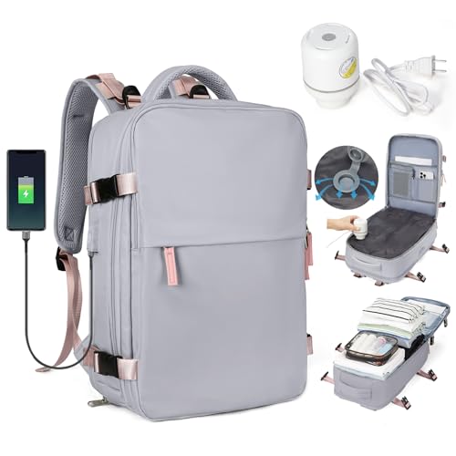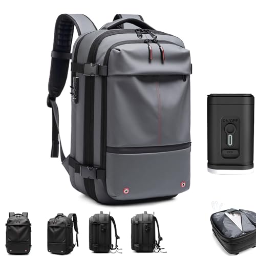 Vacuum Backpack Travel, 60L Expandable Backpack With Vacuum System, Men's Multifunction Carry On Travel Backpack (Color : Grey+Electric Vacuum)