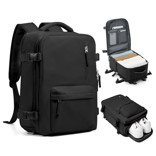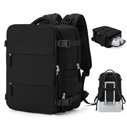 ZNBO Resryggsäck, Carry On Ryggsäck för resväska, vattentålig hållbar bärbar ryggsäckar, Stor dagspaket Business Weekender Bagage Ryggsäck för män kvinnor,Black