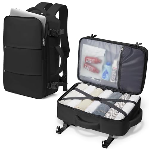 JASLEN - Reseryggsäck Handbaggerygga Kabinelyggsäck Carry On Väska Flyg Godkänd Ryggsäck Perfekt För Resor Med Kompakt Design Och Bekväma Fack. Utökningsbar, Svart