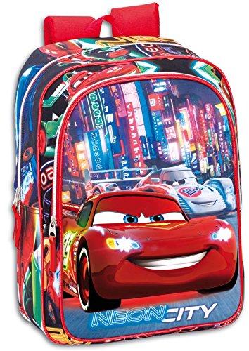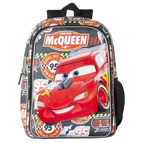 Joumma Disney Cars Lets Race ryggsäck, skolryggsäck, tillverkad av polyester, fickor och fack, breda justerbara axelremmar., Röd röd, Ryggsäck 33