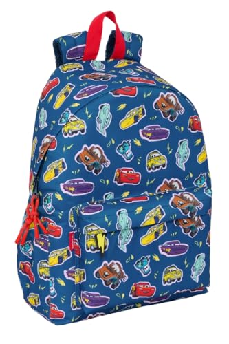 Safta CARS RACING - Ryggsäck för bärbar dator 14,1 tum, idealisk för ungdomar i olika åldrar, bekväm och mångsidig, kvalitet och styrka, 31 x 13 x 43 cm, Marinblå, M, Avslappnad