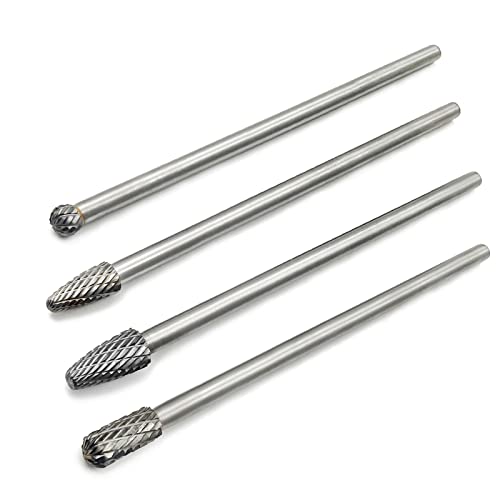 4pcs 6 Inch Long Reach Double Cut Carbide Rotary Burrs Set Tungsten Carbide Bit 1/4" Shank for DIY Wood-working Carving, Drilling, Engraving,Metal Polishing