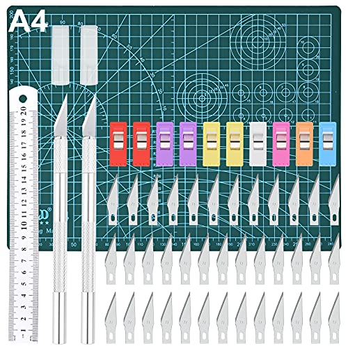 GOLDGE Skalpell Set hantverksknivar hobbykniv set carving Craft knivsats med 40 ersättningsblad skärbräda klämma linjal