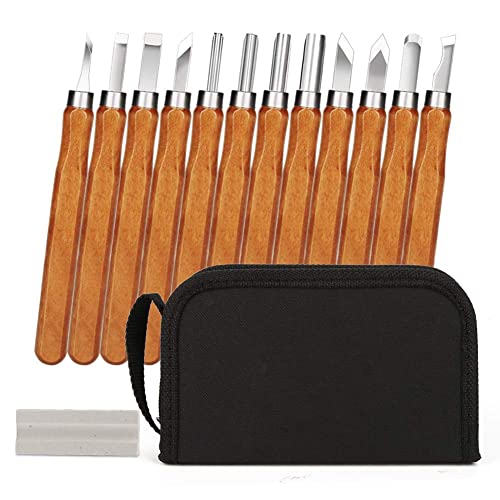 HOSPAOP Träskärverktygssats - 12 st. träknivar och en slipsten för vuxna och barn, skärkniv set för trä, frukt, grönsaker, carving DIY, skulptur och vax