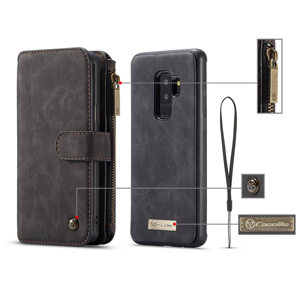 Capida Galaxy S8 Plus CASEME Retro Split Läder 2-i-1 plånbok