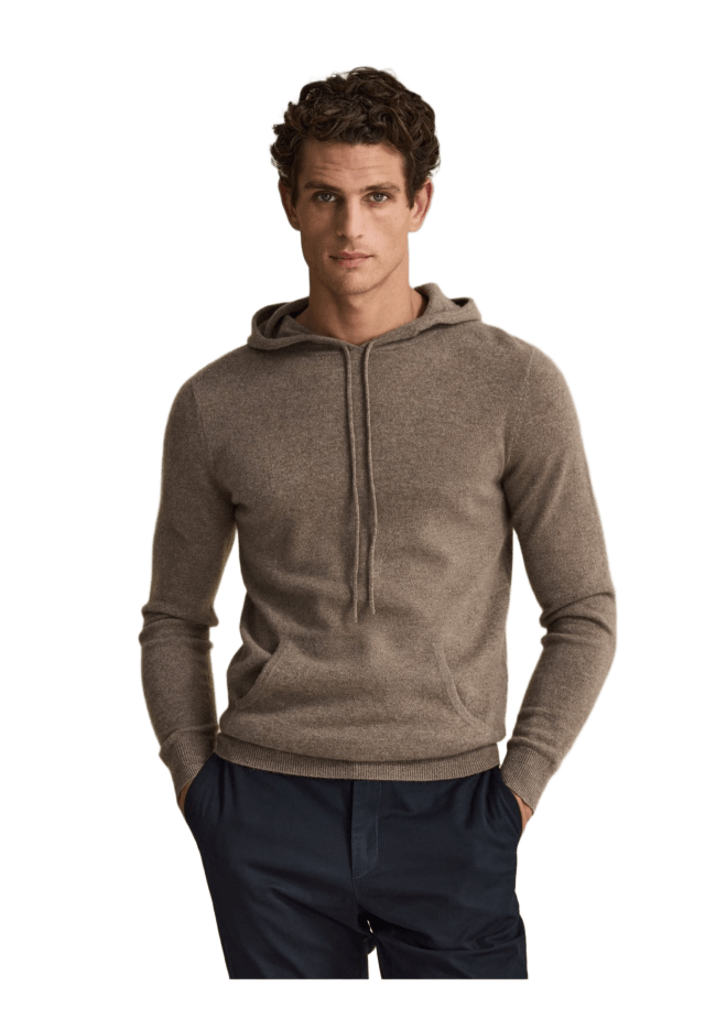 Davida Cashmere Man Front Pocket Hoodie - Beige - L